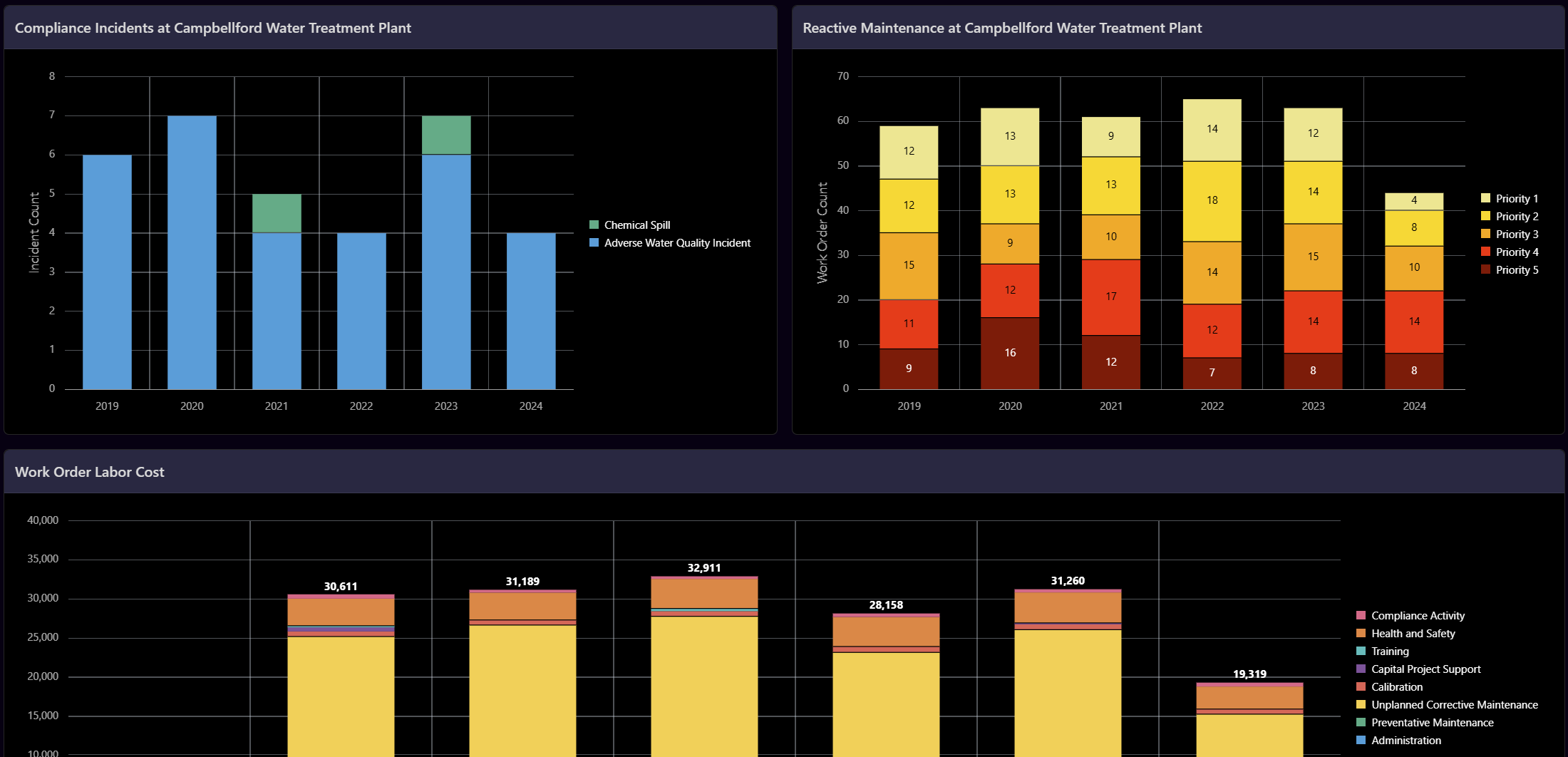 Evaluate incidents, samples, flows, work orders, energy consumption, and more for every facility in your inventory.
